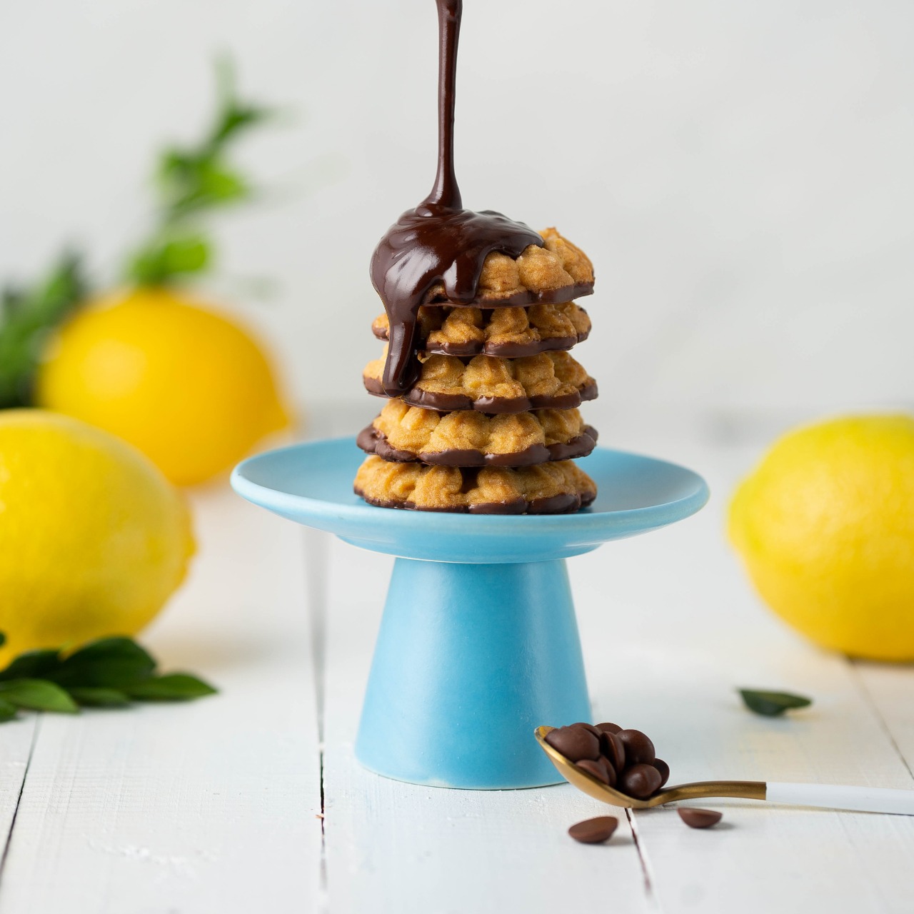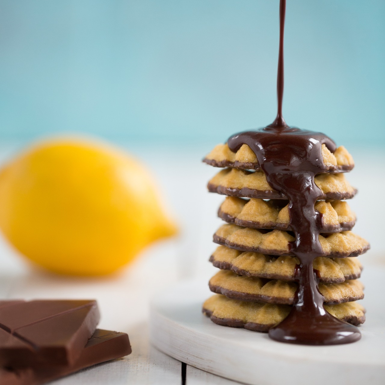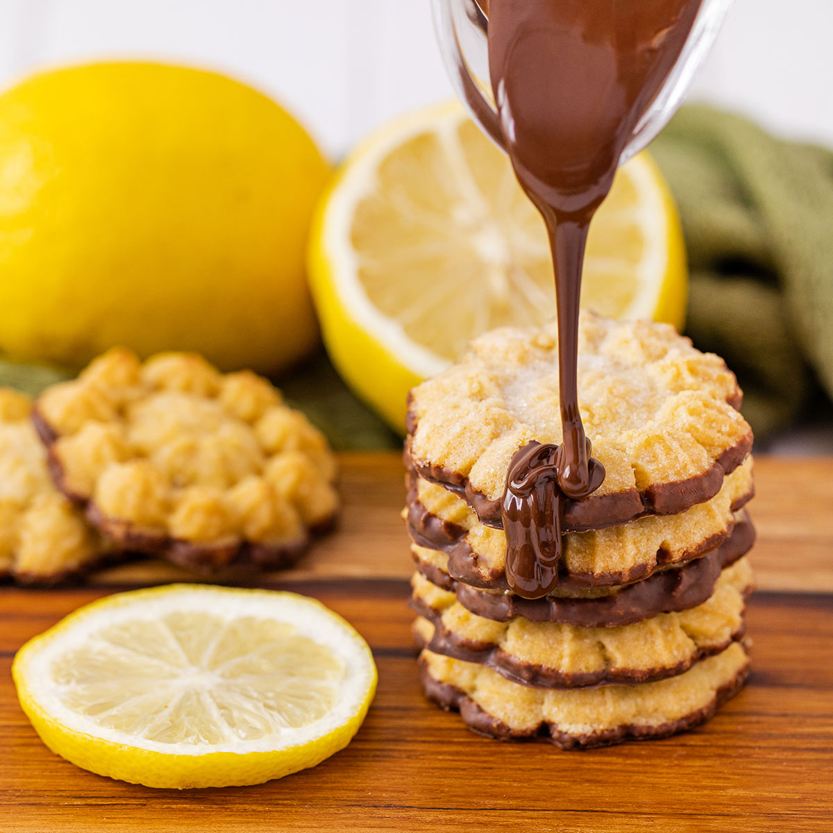 A massa é feita com fubá e um toque de limão siciliano fresco – o que traz um delicioso sabor cítrico ao biscoito. Em um equilíbrio perfeito, o doce é adicionado através de pequenos cristais de açúcar, cobertos por uma camada generosa de chocolate.